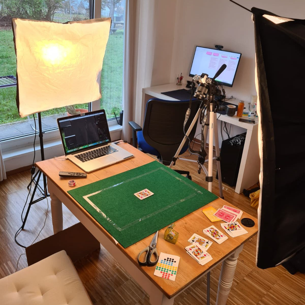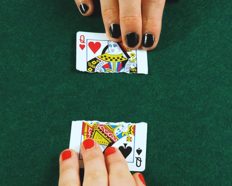 The stop-motion trickery required well studied reversed-shot scenes and many, many decks of playing cards.